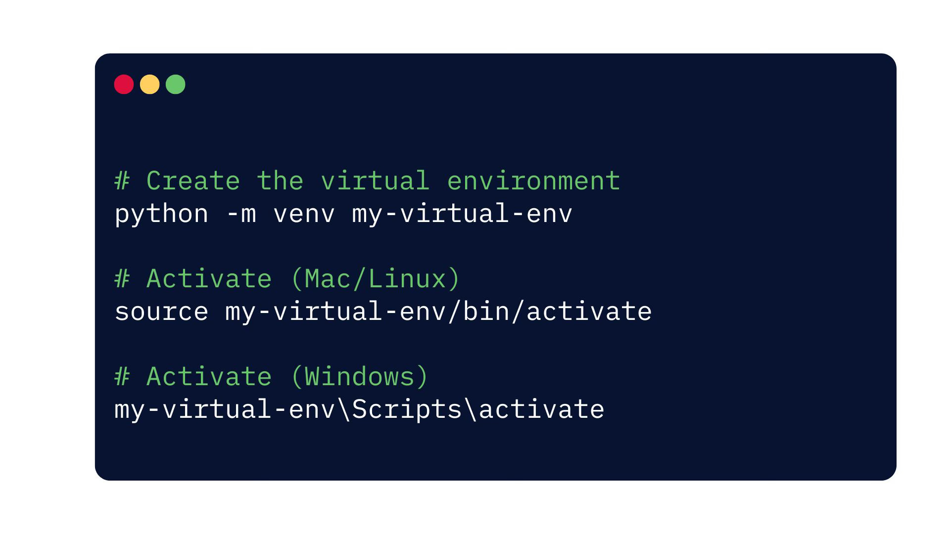 pip → The default Python package manager. Works across all operating systems and is lightweight.